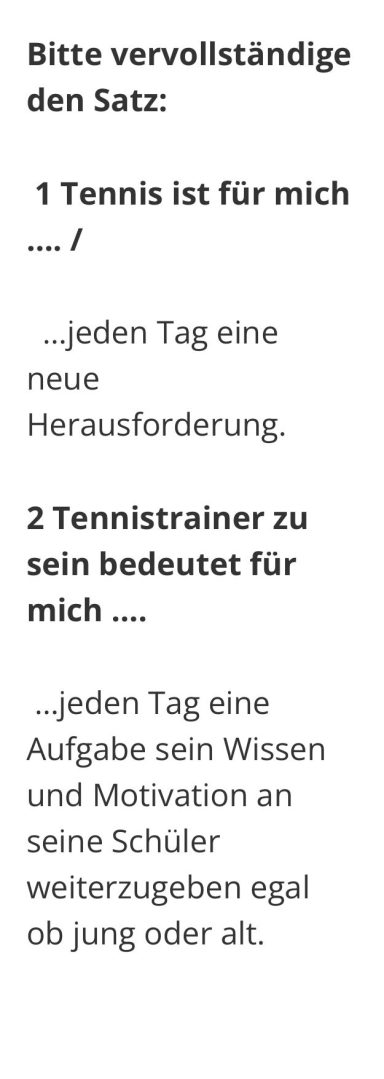 Seit 1989 staatlich geprüfter Tennislehrer